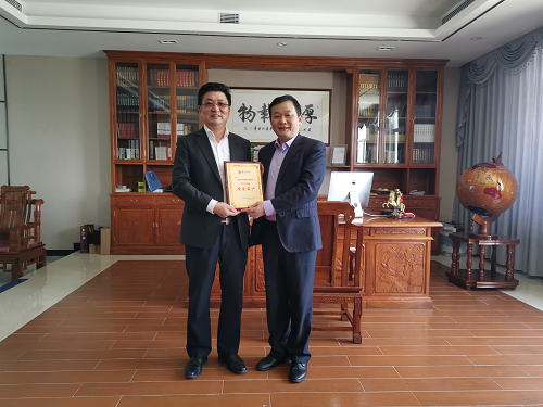 4月13日上午,中国银行股份有限公司肇庆分行行长、党委书记陈卫兵一行4人莅临广东亚太公司,授予:米兰体育「中国」米兰官方网站-MILAN 2019年“黄金客户”牌匾,颁发给董事长朱增余。