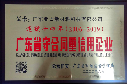 广东亚太公司荣获“连续十四年广东省守合同重信用企业”阅读次数:1070 | 发布日期:2020/7/2 | 作者: | 来源: