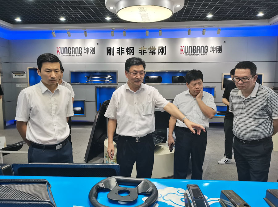 杨坤主任参观了展示厅复合材料汽车零部件的产品,在介绍过程中,杨坤主任询问了产品轻量化情况,产品设计与传统金属件的优势,产品力学性能对比、价格对比以及亚太公司在产品制造过程中核心技术和优势;并深入车间了解汽车雨刮支条和复合材料汽车零部件制造过程。