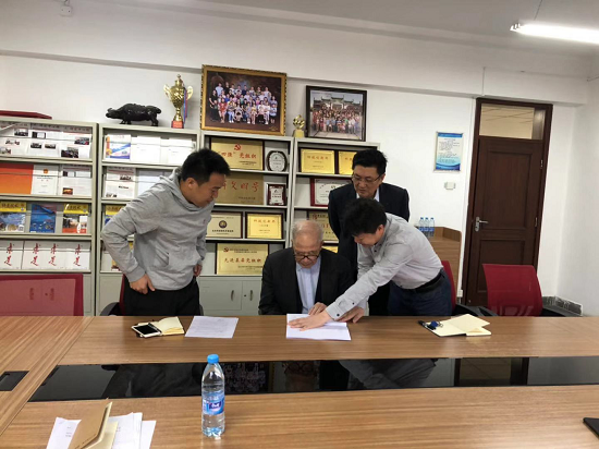 图:总经理朱增余在北京请带头人陈蕴博院士签名