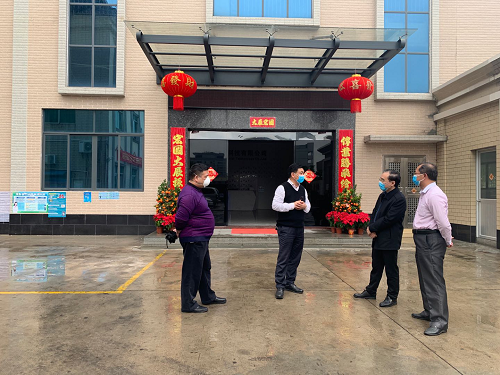 2月14日,四会市人大常委会主任邹卫无等领导一行,来到亚太公司调研指导新冠病毒肺炎疫情防控和企业复工复产工作,视察了解企业疫情防控工作和复工复产防控物资准备情况,关心了解企业当前复工面临的困难。