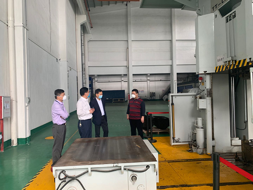 陈军忠副市长一行首先到亚太公司的车间现场,详细了解公司复产的防疫措施和复产情况。深入碳纤维汽车零部件车间和展厅,细致了解了碳纤维汽车零部件智能化快速成型生产线和新产品研发情况。当听到朱增余董事长介绍,亚太公司2019年已经成功为主机厂开发了多款碳纤维复合材料汽车零部件并实现了小批量产,完成了1项碳纤维复合材料汽车零部件国家标准的制订;并在过去3年,亚太公司在产业转型升级、设备技改更新、新产品研发投入超过8000万元时,陈副市长表示赞赏,认为一家中小型民营企业能够有魄力、有远见抓技改、抓创新,大手笔投入,很不容易,值得点赞。今后要努力争取技改等政府政策扶持,亚太公司不论是当前复产有困难还是今后发展有需要,政府都会给予大力帮扶。