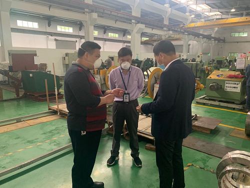 图3:陈军忠副市长(右)、何伟光主任(中间)在广东亚太公司罗国伟副总陪同下参观雨刮车间
